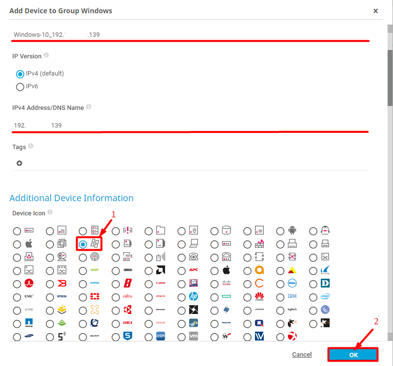 - Tới phần Device icon: Chọn vào icon đúng với hệ điều hành Windows.